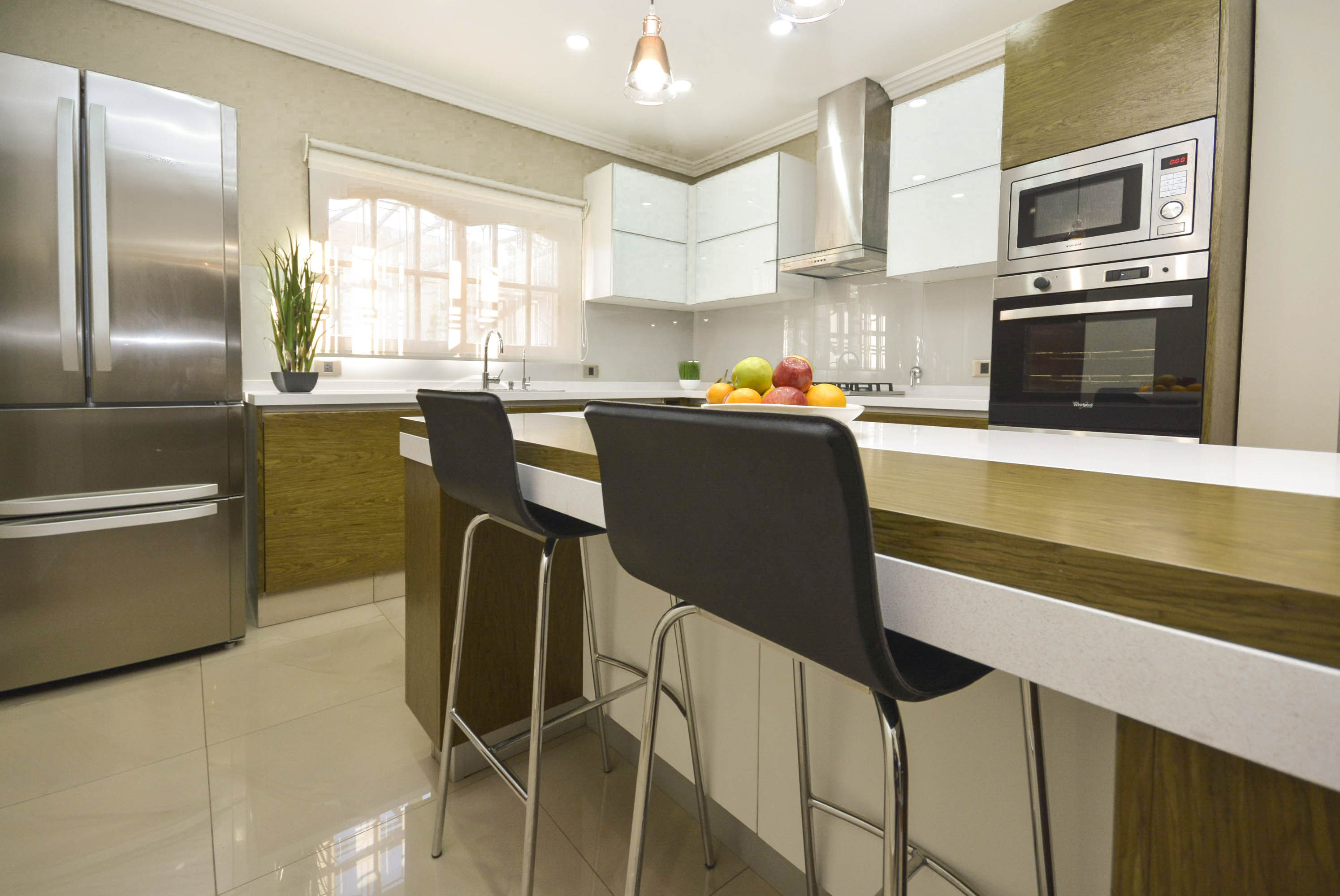 La cocina de NANCY esta relaizada en nuestro modelo Sense enchapado en madera de Lapacho lustre poliuretanico, interiores en melamina blanca 18 mm, Herrajes BLUM con cierre suave. Alacenas con sistema plegadizo y vidrio Blanco