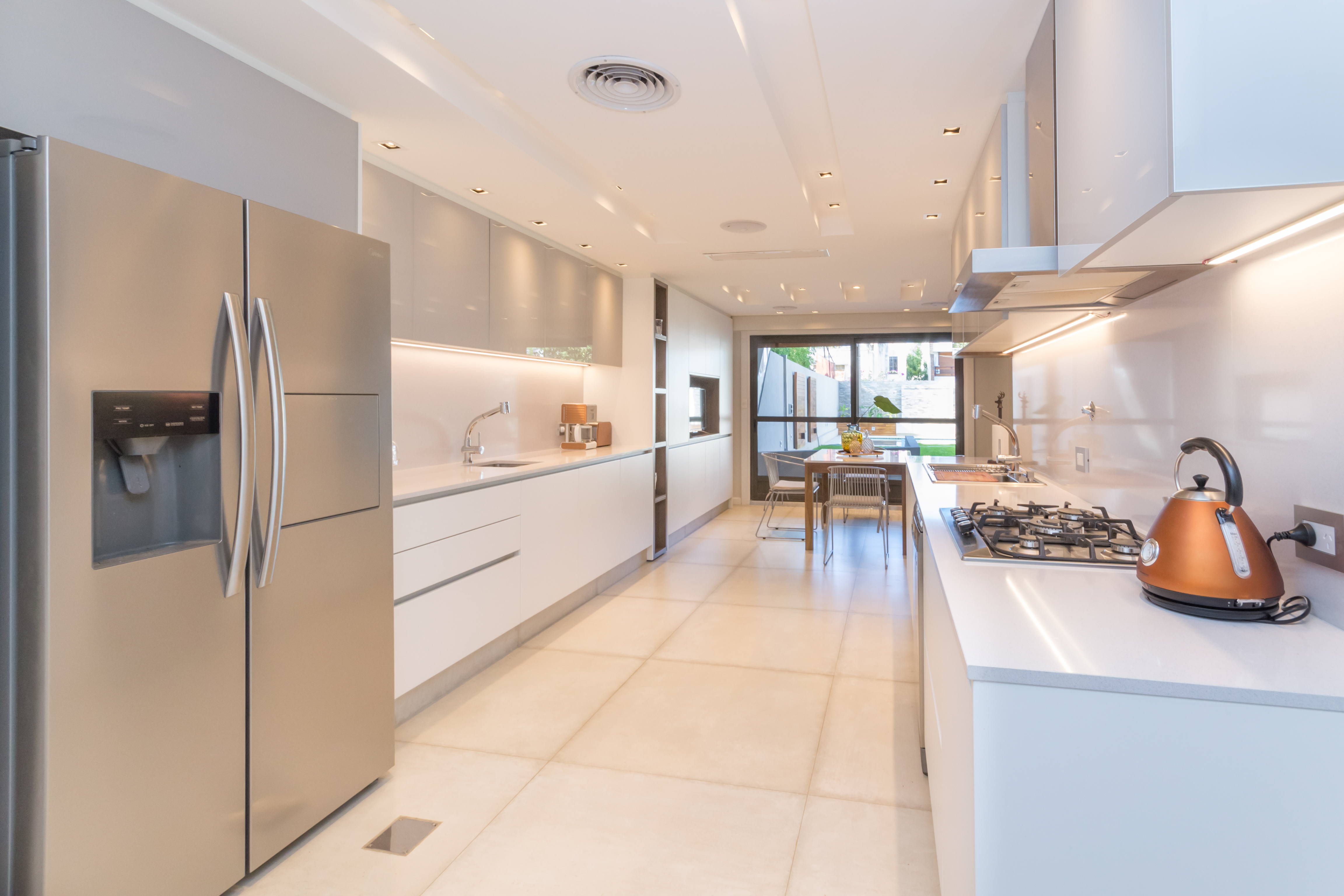 Reforma realizada para estudio Palombo, modelo DASH con vidrio color Nata en alacenas y modulos abiertos en melamina touch color Terrarum